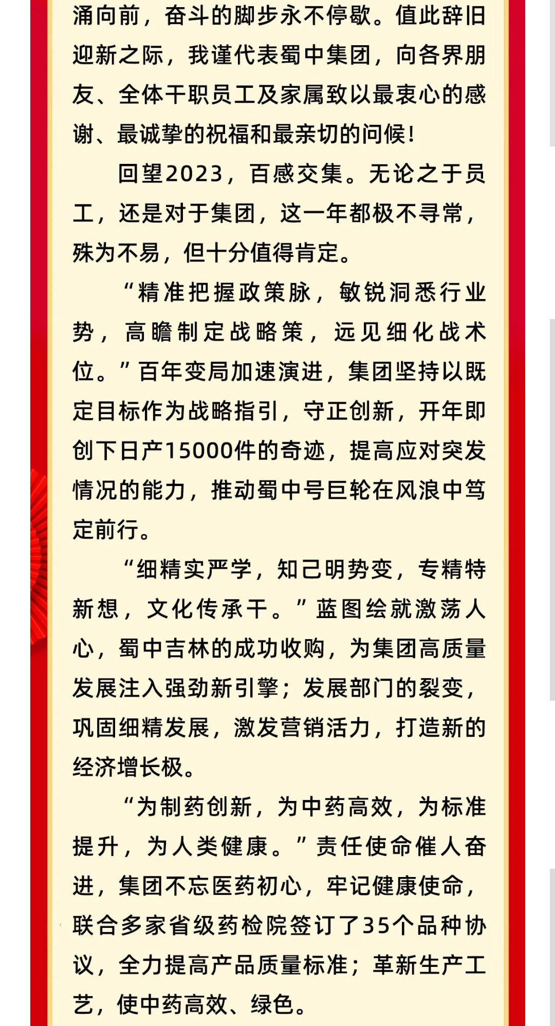 蜀中集团董事长二〇二四年元旦献词